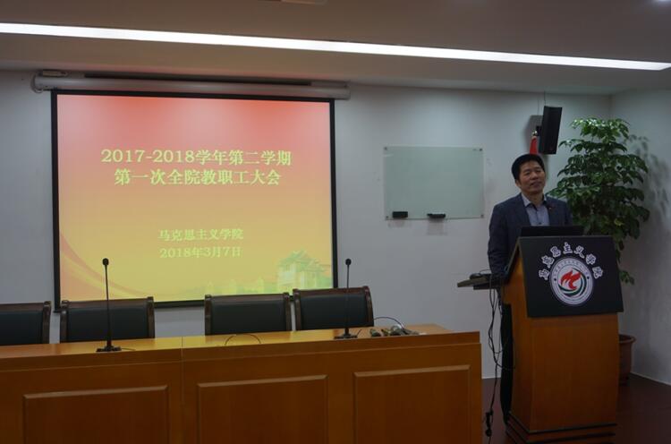 2018年3月7日上午,在囊萤楼312报告厅,学院召开了2017-2018学年第二学期第一次全院教职工大会。会议由学院党委书记许和山主持,全体教职工出席。