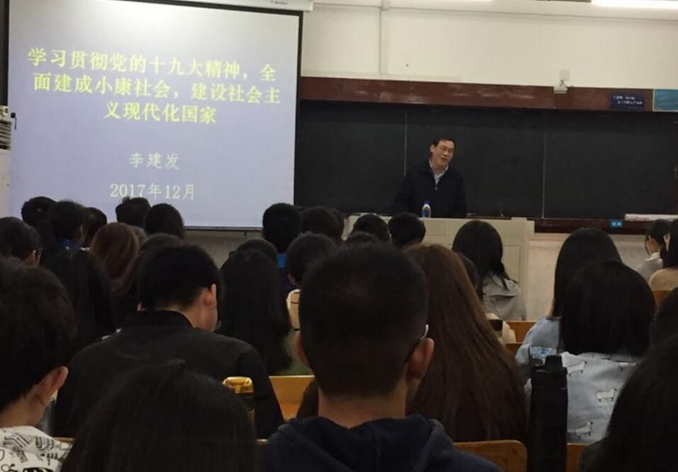 12月25日下午,校党委副书记、副校长李建发教授走进外文学院2017级日语和法语专业“形势与政策”思政课堂,为同学们带来了主题为《学习贯彻党的十九大精神 全面建成小康社会 建设社会主义现代化国家》的专题讲座。