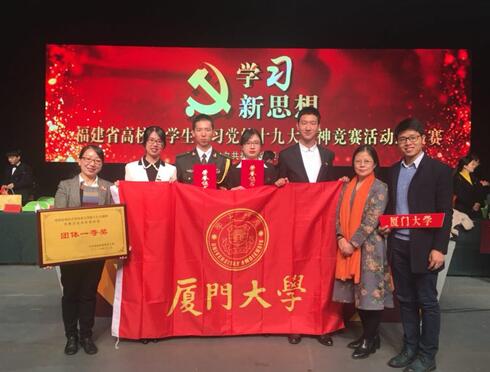 12月18日,由中共福建省委教育工委主办、福建教育电视台承办的以“学习新思想”为主题的全省高校大学生学习党的十九大精神竞赛活动总决赛举行。厦门大学获得本科高校组团体一等奖,两位学生陈诗颖、梁乾坤分别获得个人二等奖。此次赛事准备过程中,我院袁华老师全程进行理论指导,原宗丽老师在微演讲训练环节进行了指导,两位老师认真负责、兢兢业业,为厦门大学团队获奖作出颇大的贡献。