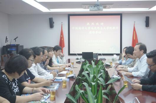 白院长首先对荆友奎院长一行的到访表示欢迎,接着介绍了厦门大学马克思主义学院的基本情况,着重介绍了我院“教学+科研+社会服务”的三位一体综合创新工程,就教学、科研、学科建设及社会服务等内容与来访老师进行交流。中国海洋大学的荆友奎院长也就其学院的发展情况也做了介绍,重点介绍了其教学与科研的情况。