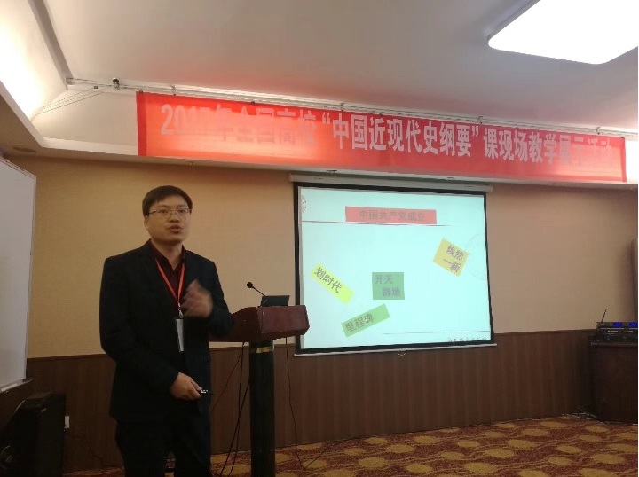 我院中国近现代教研部佳宏伟副教授代表我省中国近现代史纲要课程教师,以《新形势、新信仰、新组织、新革命——中国共产党成立之“新”意义》为题参加现场教学技能展示。佳宏伟老师围绕着中国共产党的成立这一重大历史事件,从价值逻辑、文本逻辑和事实逻辑三个层面,以中国共产党成立所展现“四新”(“形势”之新、“构成”之新、“信仰”之新、“方式”之新)为中心进行展示,整个展示获得评委们肯定,认为整个课程展示有思考、有研究、有高度,将教材内容很好转化成教学内容,做到教材与教学有机统一、价值引领与学术思考的有机结合。