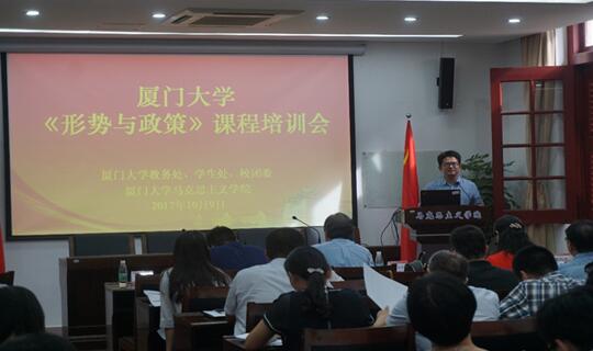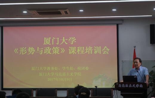 10月9日下午,2017-2018学年第一学期《形势与政策》课程培训会在马克思主义学院囊萤楼216报告厅举行。本次会议由马克思主义学院副院长石红梅主持,参加此次会议的有:马克思主义学院院长白锡能、厦门大学校团委书记陈怀锋、厦门大学学生工作部副部长王洁松、厦门大学教务处副处长黄艳萍、各学院党委副书记、马克思主义学院形势与政策教研部老师以及本学期参与授课的辅导员老师。