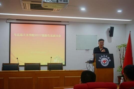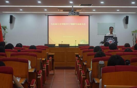 2017年9月20日下午,我院在囊萤楼313报告厅举行2017级新生见面大会。参加本次见面会的有学院白锡能院长、许和山书记、张有奎副院长、石红梅副院长、张艳涛副院长以及各教研部主任副主任、导师代表、团委书记、2017级新生班主任、新老生代表、2017级全体新生。会议由原宗丽副书记主持。