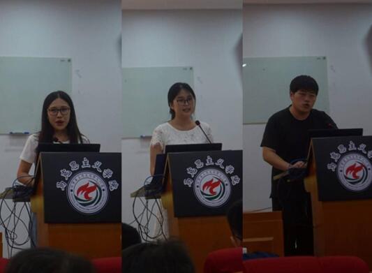 接着,老生代表2016级硕士潘虹旭、新生代表2017级硕士刘洋和博士陈帅飞上台作了相关发言,他们慷慨激昂地表达了对学习的看法和厦大生活的热爱。