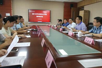 最后,调研人员赶赴陕西师范大学马克思主义学院进行座谈交流,座谈会由陕西师范大学马克思主义学院院长任晓伟主持,任院长首先对厦门大学马克思主义学院一行人员来院交流表示热烈欢迎,同时介绍了贵院的基本情况,之后,双方围绕思政课课程设置与教材建设状况、思政课教学评价等方面经验、思政课教师队伍建设经验、科研教学管理经验、“概论”“形势与政策”课程建设与教学实践经验、如何优化教学模式以及如何利用互联网在教学过程中发挥建设性作用等问题展开了深入的交流研讨。