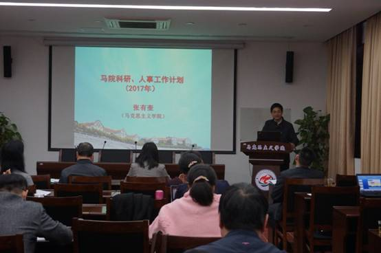 其次,马克思主义学院分管科研和人事工作的张有奎副院长就学院2017年科研工作和师资队伍建设的思路和举措进行了讲话。马克思主义学院分管本科生思政课教学的石红梅副院长对落实落细“三位一体”教学模式,全面提升思想政治课论课教学质量进行了阐述。马克思主义学院分管学科建设和研究生工作的张艳涛副院长对2017年学科建设、研究生培养和对外宣传工作思路和计划要点进行了说明。
