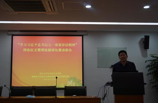 张有奎副院长宣布了获奖名单。本次理论征文比赛共有娄澜等9名同学获奖,理论演讲比赛共有潘虹旭等3人名同学获奖。