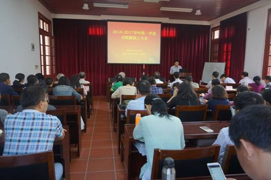 2016年11月16日下午,学院在同安楼201会议室召开2016-2017学年第一学期第二次教职工大会,学院领导班子及全体教职工参加了会议。会议由学院党委书记许和山主持。