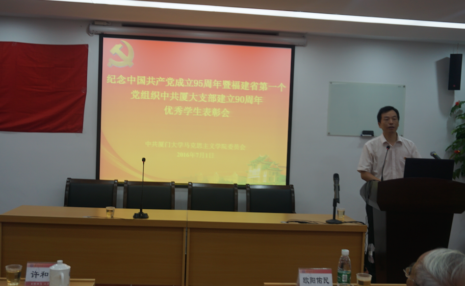7月1号,我院在囊萤楼312会议室召开庆祝中国共产党成立95周年暨福建省第一个党组织中共厦大支部建立90周年优秀学生表彰会议。我院党委书记、关工委主任许和山,关工委常务副主任欧阳佑民和党委副书记、关工委副主任原宗丽,团委书记蔡虎堂以及我院全体学生参加了会议。会议由团委书记蔡虎堂主持。