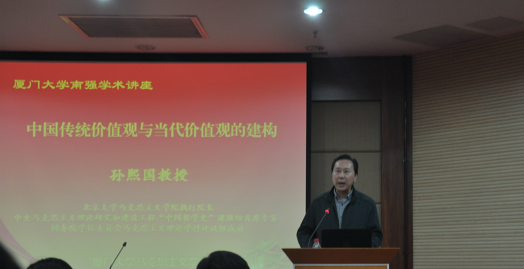 2016年4月1日下午,北京大学马克思主义学院执行院长孙熙国教授做客我校“南强学术讲座”,并做了题为“中国传统价值观与当代价值观的建构”的学术报告。报告在克立楼三楼报告厅举办,由我院院长白锡能教授主持,思政课研究生及我院相关师生聆听了此次学术报告。