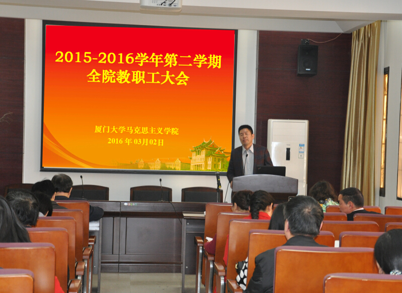 2016年3月2日下午,在成智二109报告厅,召开2015—2016学年第二学期全院教职工大会。会议由许和山书记主持,全体教职工出席。