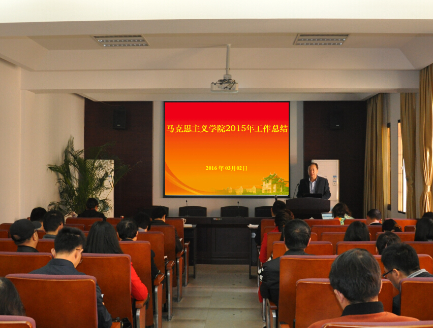 最后,许和山书记作了总结讲话。第一,学院科研经费超规模。2015年度我院科研立项经费突破500万元,科研经费到账494.04万元,完成率达185.03%,科研经费增长率和完成率居全校首位。第二,教学创新见成效。学院以办好思想政治理论课为重心,全面落实思想政治理论课教学改革任务,并取得了一定的成效。第三,学科建设见曙光。2015年学院设置了三个二级学科博士点,努力寻求获批马克思主义理论一级学科博士授权点。以学科建设为龙头,以思政课建设为核心,以科研为支撑,打造福建省重点马院,同时积极谋划和筹备,再次申报全国重点马克思主义学院。第四,社会服务稳步推。面向国家重大战略需求,着力加强智库建设和资政服务,努力提升教学科研成果有效转化为社会服务资源的能力。第五,教师收入翻倍增。摒除工资唯职称年限论,学校大力鼓励支持为学校做出实际贡献的教师。一是受聘教学科研重要岗位的教师工资高。我院有8位副高教师新聘重要岗位,其工资甚至超过教授,希望这些老师切实发挥教学骨干作用,真正做出成绩,同时鼓励其他老师争聘重要岗位。二是高级别教授工资高,鼓励正高教师努力申请重大、重点课题。三是年度考核优秀的教师工资上调一档,考核不合格者,工资降至下一职称的最低档,鼓励教师争先评优。第六,核心意识存心底。今年学校开展“两学一做”学习教育,进一步提高教师的政治意识。学院要求民主党派及无党派教师也要参加学习并积极向党组织靠拢。特别强调学院思政课教师不存在党员与非党员之分,所有教师都要以中共党员的标准严格要求自己。此外,今年中纪委对我校进行政治巡视。思政课堂教学是其中重点巡视内容,目前学校部处及各学院领导已开始介入听课。第七,看齐意识争先进,学院建设朝前冲。针对学院会风及教师工作室使用情况,学院将教师的出勤率纳入考核的指标之一,采取赏罚并重的措施,以此激励全体教师严格要求自己,以身作则,往更高的方向努力奋斗。