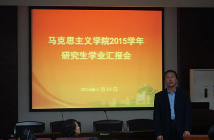 2016年1月14日,我院在成智二109会议室举行召开了2015学年研究生学业汇报会。院长白锡能、副院长张有奎、副书记原宗丽,研究生导师张艳涛、宋建丽、李仙飞、章舜钦、冯霞、庞虎,以及团委书记蔡虎堂和全体研究生参加了此次汇报会。此次会议由原宗丽老师主持。