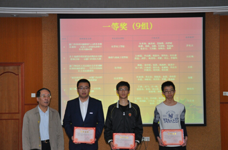 教务处计国君处长宣读了《关于表彰2015年厦门大学思想政治理论课实践教学优秀调研报告、优秀指导教师的决定》((2015)厦大教113 号)。表彰决定提到,本次共有111组成果报告获奖,其中特等奖1组、一等奖9组、二等奖20组、三等奖28组以及优秀奖53组,贺东航老师等9人获得“优秀指导教师”称号。林东伟副书记、邬大光副校长及与其他与会领导为师生颁发了获奖证书。