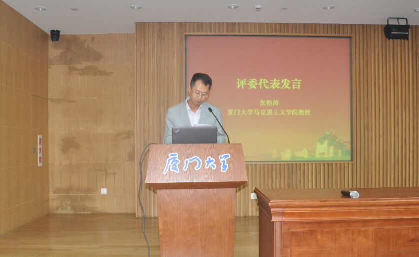 张艳涛教授作为评委代表进行了发言。他对此次参赛的论文的总体情况进行了点评,认为本次参赛论文的选题面广,内容丰富,给予了充分的肯定。同时,他也指出参赛论文的学术规范意识和说理性还有待进一步提升。最后,他还表示在当今多元化的时代,各种思潮激荡,作为老师,要尤其注重培养学生独立思考的能力和担当意识。