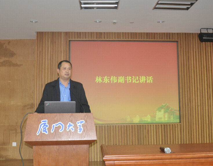 最后,林东伟副书记针对本次活动作了总结讲话。他对本次活动给予了充分的肯定,认为此项赛事活动办得非常成功。他指出习近平总书记系列重要讲话蕴含了新思想、新观点和新论断,具有内在的关联性;“四个全面”战略布局的内容之间具有很强的逻辑性,联系紧密,“四个全面”思想回应了社会的现实问题,对中国梦的实现具有重要的意义;青年学生是祖国的未来,每一个厦大学子要深入学习和把握习近平总书记系列重要讲话精神,将个人价值的实现与祖国的发展结合起来。他还就学习习近平总书记系列重要讲话精神,提出了以下几点要求:一是要真学真懂,要学会读原著,学通学透,不能断章取义;二是要真信真用,青年人要将祖国放于心中,用所学的理论解决现实中的问题,做到学以致用,知行合一;三是要宣传引导,各单位要充分发挥党团组织的作用,利用专题讲座、报告会、征文比赛、新媒体等多种多样的形式传播正能量,引导学生树立正确的价值观。