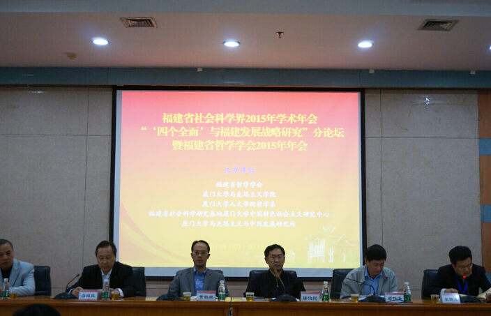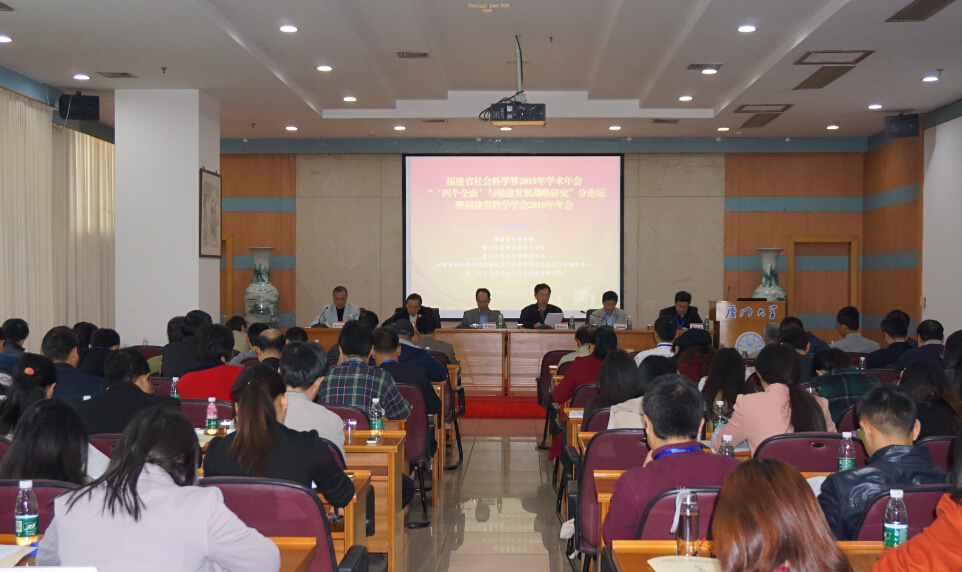 2015年12月5日,福建省社会科学界2015年学术年会“‘四个全面’与福建发展战略研究”分论坛在厦门大学颂恩楼215会议室举行。福建省20所高等院校单位及100多名专家学者与会。100多名福建省各高校马克思主义理论的专家学者参加此次会议。