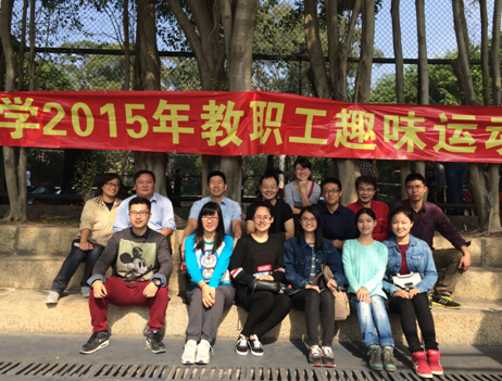 11月29日,厦门大学2015年教职工趣味运动会在东苑运动场举行。我院工会主席李德元亲自组织带队,学院书记许和山亲临现场指导,学院庞虎、赵颖、洪楼、李猛等老师及办公室行政人员蔡虎堂、江春萍、熊欢、邹慧芳参加了本次运动。我院研究生组织拉拉队为教师参赛队伍呐喊助威。