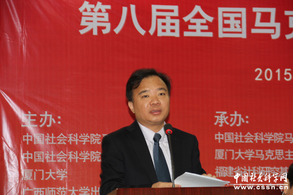 厦门大学党委书记张彦教授、福建省委宣传部副部长张萍、中国社会科学院马克思主义学部主任、马克思主义研究院原院长程恩富研究员出席开幕式并致辞,开幕式由厦门大学马克思主义学院院长白锡能主持。
