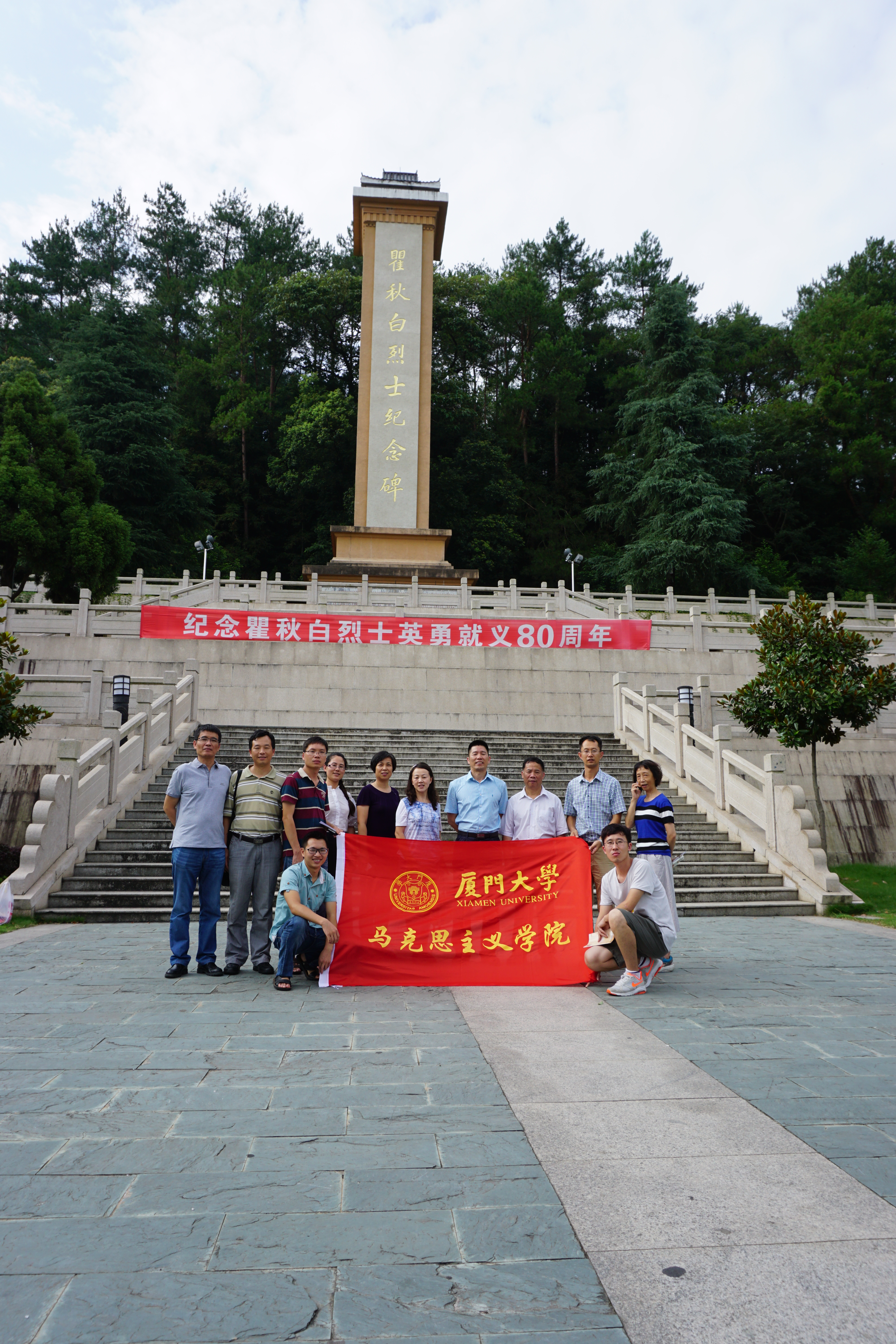 调研实践队的第二站是厦门大学位于长汀县的旧址。这个旧址是厦门大学1937年到1946年抗战时期,为躲避战乱而内迁的校址。此时期,在萨本栋校长带领下,厦门大学在古汀州这片土地的滋养下,短短数年间,一跃成为中国最出色的大学,成为东南沿海的“南方之强”。看到先贤们的丰功伟绩,成员们无不为之动容和自豪。同时调研实践队还参观了瞿秋白纪念馆。瞿秋白是中国共产党早期的主要领导人之一,伟大的马克思主义者、卓越的无产阶级革命家,理论家和宣传家,中国的革命文学事业的奠基者之一。在瞿秋白烈士纪念碑前,大家都肃然起敬,默默致哀。