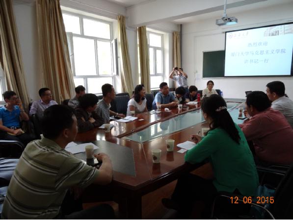 在新疆大学马克思主义学院考察期间,新疆马院负责人从学科建设、课程建设、人才培养、学术交流与国际合作等方面介绍了新疆大学马克思主义学院的发展历程、取得的成绩以及面临的挑战。大家就如何更好地上好思政课,如何真正让大学生爱上思政课展开热烈的讨论。新疆大学接近60%的学生是少数民族,在如何结合新疆大学的区域特色和固疆维稳的实际需要,将马克思主义基本理论讲清,讲活,澄清学生在民族问题、宗教问题方面的普遍性困惑方面,新疆大学马克思主义学院做了大量有益的尝试和探索。近年来,内地高校包括厦门大学来自于少数民族地区的交流生不断增加,如何通过思政课,有效平衡他们的民族身份认同与政治认同,帮助他们迅速适应环境,更好地融入当地高校的教学生活之中,也成为内地高校特别是思政课教师面临的问题,新疆大学马克思主义学院在这方面积累下来的丰富经验对此提供了非常有益的借鉴。我院许和山书记、石红梅副院长、张艳涛主任分别就社会服务、宏观教学模式改革、微观课程建设等方面介绍了我院的基本情况,双方在进一步加强教学科研方面的交流,尝试性建设固定的实践教学基地方面达成良好合作意向。