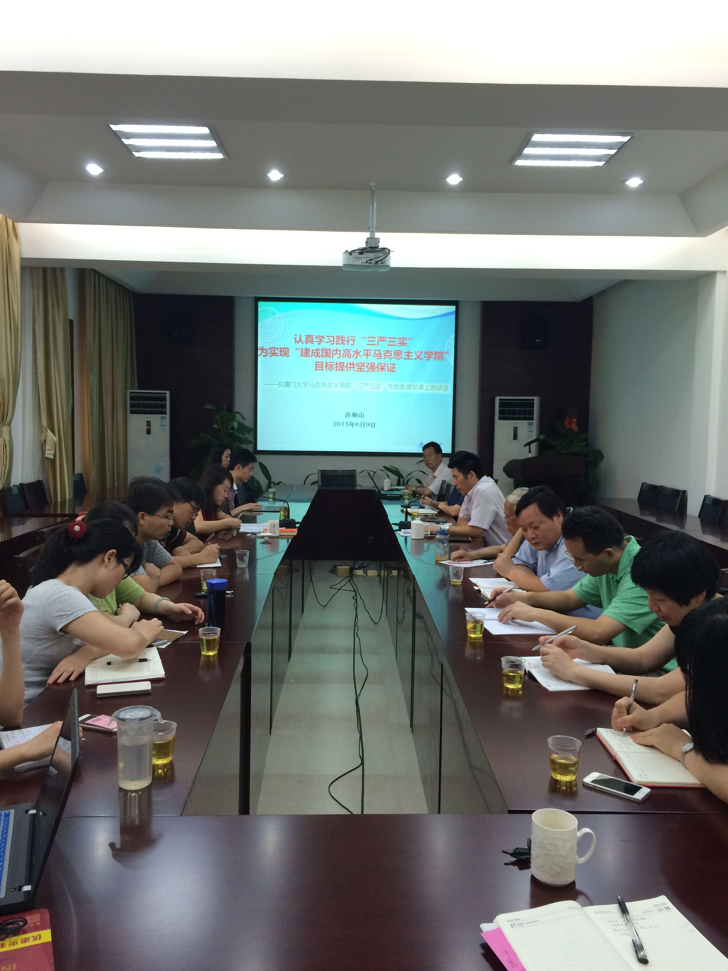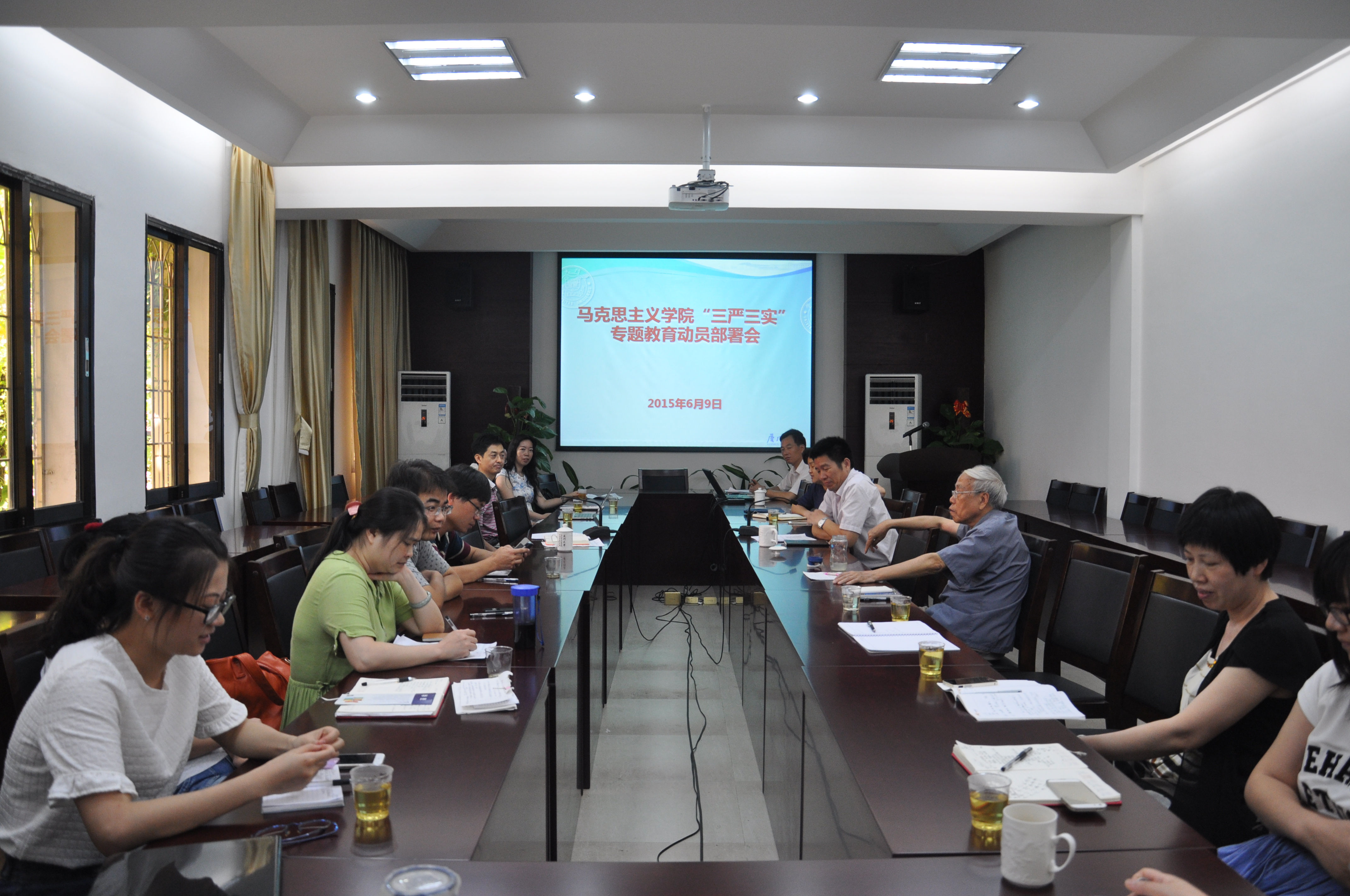 6月9日上午,马克思主义学院在成智二110会议室召开“三严三实”专题教育动员部署会。学院班子成员、党委委员、支部书记、教研室正副主任、民主党派代表、办公室干部等参加了会议。会议由学院副书记原宗丽主持。