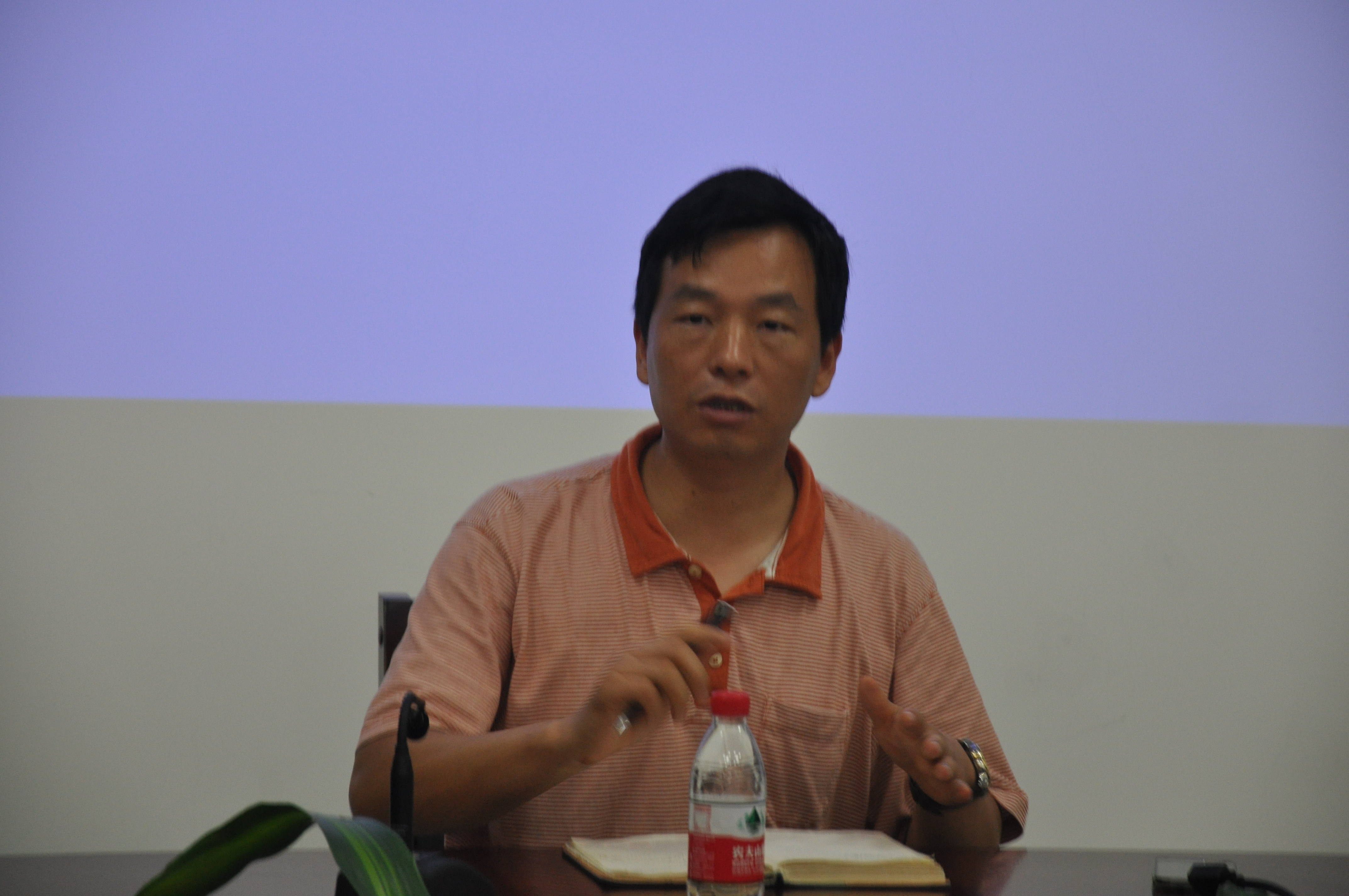 白鑫同学汇报完毕后,学院许和山书记对学院的各项工作做了总结发言。许书记分别从公共课教学、学术科研、队伍培养、社会服务等几个方面对学院的工作进行了总结回顾。他指出,我院自2011年8月建院以来从小到大,发展迅速,取得了很大的成绩。在教学方面,我院承担的全校的思政公共课教学不断创新,开展了网络教学、专题教学和实践教学等丰富的教学形式,取得了很好的效果。在科研方面,我院教师的科研课题量有大幅度的提升,涨幅已跃居全校前列,已经改变了以往我院只重教学不重科研的情况。在队伍建设方面,我院将聘请多位特聘教授作为学术带头人,进一步增强学院科研力量。在社会服务方面,我院开办的干部培训班已经开展了多次的企事业单位干部培训,与多家单位建立了友好的合作关系,收到了很好的社会效果。