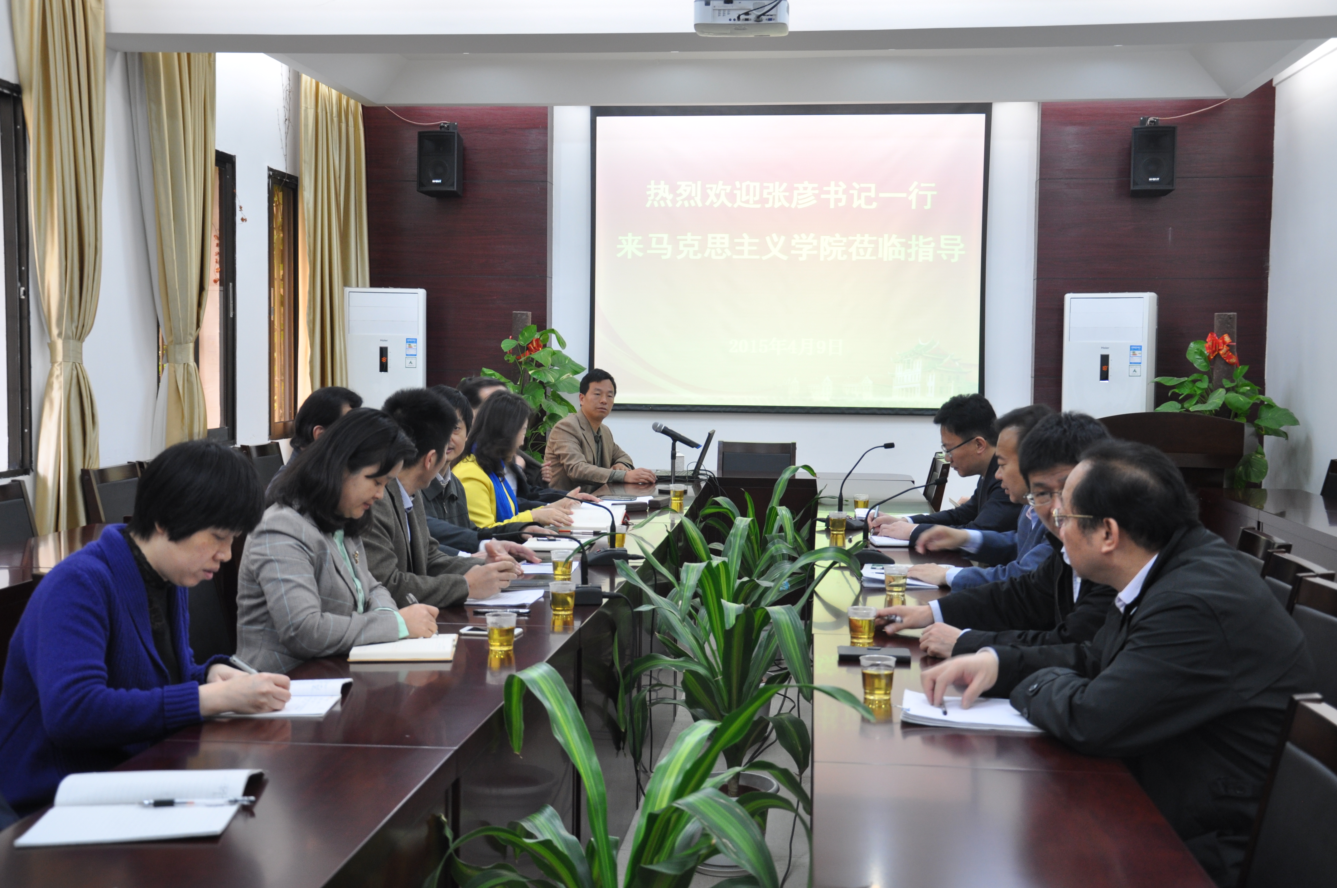 4月9日上午,校党委书记张彦率学校办公室、组织部、宣传部、教务处、社科处负责人到马克思主义学院调研,深入了解学院建设发展中的问题。学院党政领导班子及各支部书记参加了调研会议。