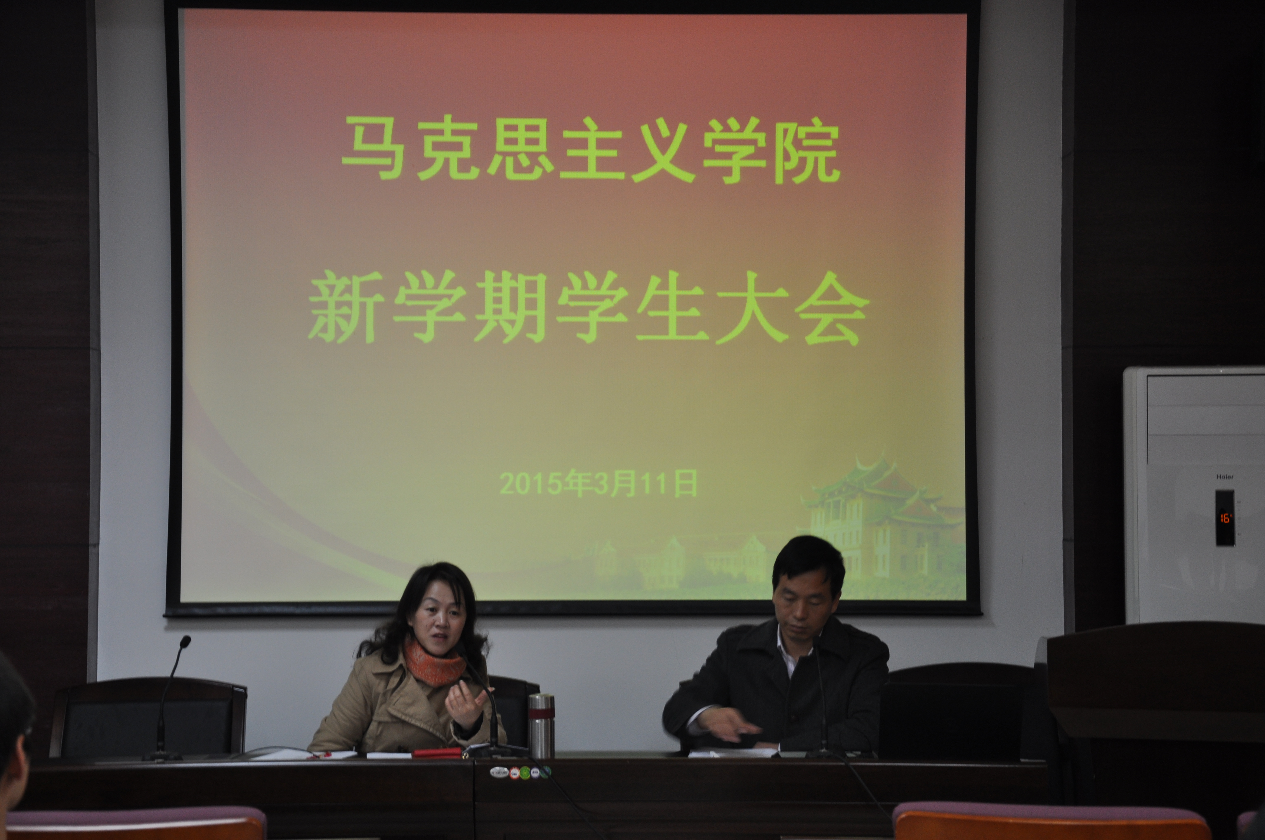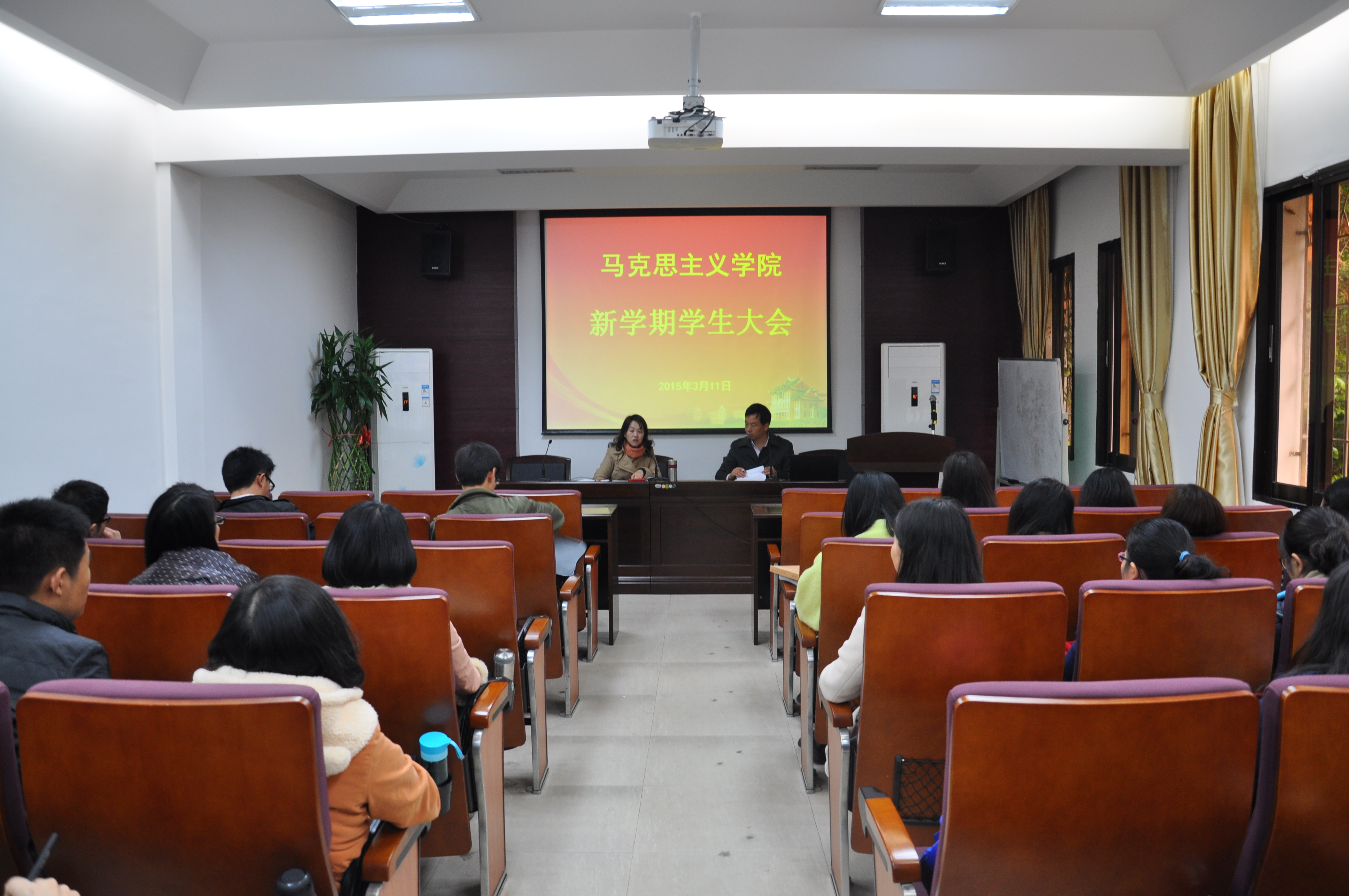 3月11日下午,我院在成智二109会议室召开2015年度新学期学生大会,学院副书记原宗丽老师和团委书记蔡虎堂老师以及全体研究生参加了此次大会。