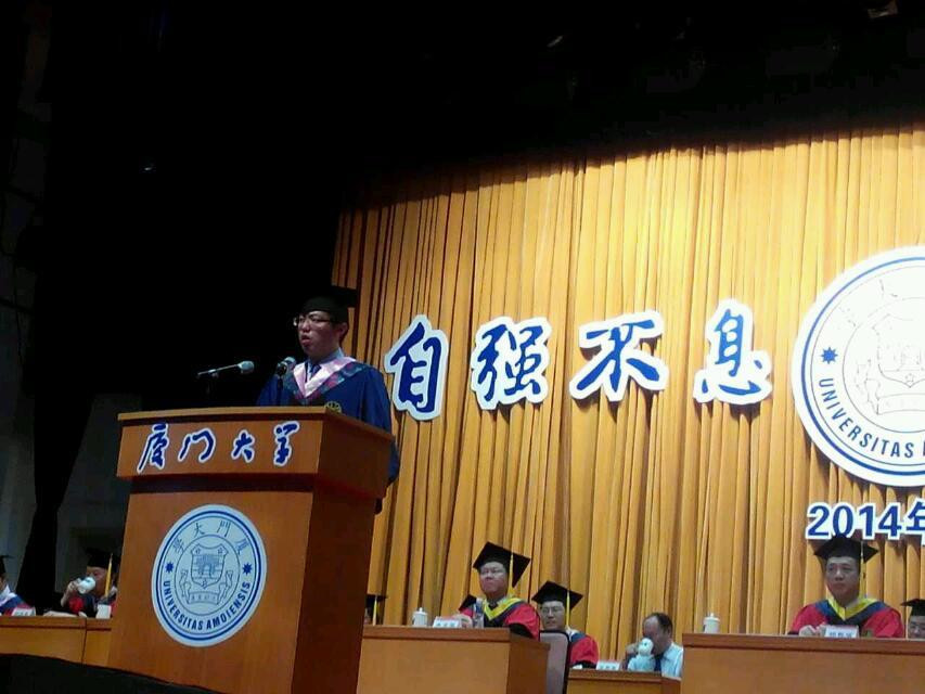 2014年6月21日上午,厦门大学2014届毕业典礼(社会科学学部)在建南大礼堂隆重举行。在毕业典礼上,我院2011级思想政治教育专业硕士毕业生刘伟力作为毕业生代表上台发言。