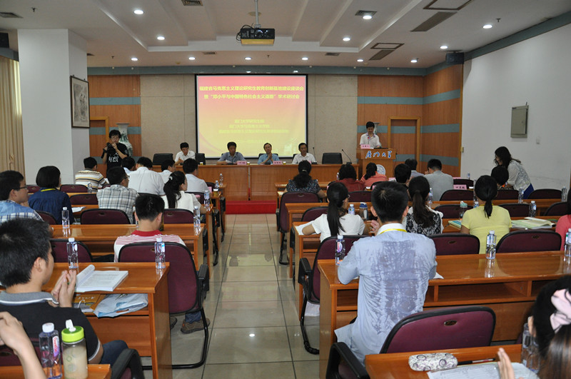 同时,“邓小平与中国特色社会主义道路”研究生学术研讨会在学院成智二109报告厅举行。会议由马克思主义学院原宗丽副书记、张艳涛副教授主持,所有参会研究生参加了此次会议。研讨会共分两部分进行,第一部分为论文交流研讨,来自省内各大高校马克思主义学院的研究生代表对自己此次参会论文的选题依据与写作思路进行了发言。第二部分为各高校马院就自己学校实施的研究生培养模式进行交流。原宗丽副书记介绍了厦大马院进行的研究生培养方案改革,厦大马院研究生王银中介绍了本院的特色学术活动——行知读书会,并且建立了福建高校马院交流群。研讨会最后,张艳涛老师做了讨论点评,他指出研究生应当多读书,多写论文并鼓励大家今后要多多进行学术训练,培养马克思主义学科的学科自信。