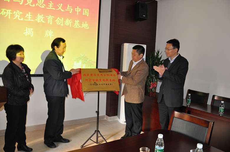 颜云蔚部委、白锡能院长、校党委组织部孙理部长及研究生院范丽娟副主任共同为福建省马克思主义与中国发展研究生教育创新基地揭牌。