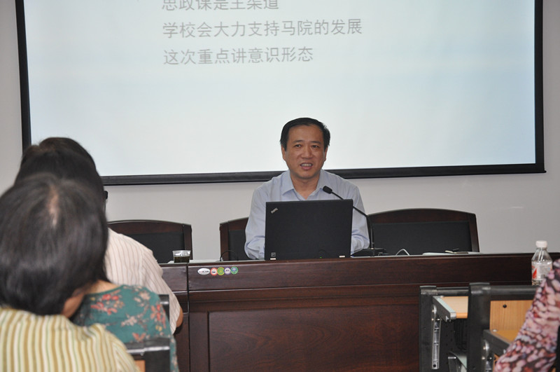 杨书记重点讲解了当前意识形态问题。他围绕意识形态领域的若干问题、中央领导同志“8·19”讲话以及马克思主义理论研究和建设工程等方面做了详细的阐述,并结合自己的工作经历,运用丰富的实例,从正、反两方面剖析了当前意识形态领域存在的问题,指出要切实加强马克思主义理论教育和研究工作。杨书记的报告进一步深化了学院全体师生以及学校“形势与政策”授课教师对当前意识形态问题的认识和思考。整个报告深入浅出、内容翔实、形式生动,博得了听众的阵阵掌声。