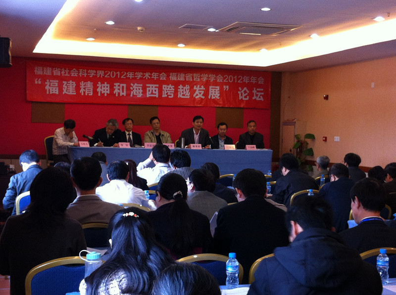2012年12月1日-2日,由学院与福建省哲学学会、厦门大学哲学系联合承办的福建省社会科学界2012年学术年会“福建精神和海西跨越发展”论坛暨福建省哲学学会2012年年会在厦门小嶝岛顺利召开。厦门大学党委常委、组织部白锡能部长、厦门大学校友会潘世墨副理事长、福建省社科联学会部李道兴主任、翔安区林奕田副区长以及来自厦门大学、福建省委党校、福建师范大学、福州大学、华侨大学等高校的80多名专家学者齐聚一堂,紧紧围绕本次会议的主题—— “福建精神和海西跨越发展”展开热烈的研讨。