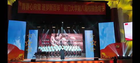 曼妙歌声萦湖畔,献礼百年心向党。为庆祝中国共产党成立一百周年、厦门大学建校一百周年,6月5日晚,厦门大学“青春心向党 逐梦新百年”第八届校园合唱节在思明校区建南大会堂拉开帷幕。我院合唱队参与了本次汇演。