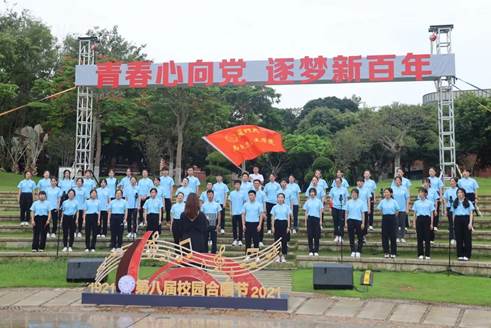 红色旋律共传唱,而今弟子颂党恩。飞扬的青春,吟唱难忘的岁月,熟悉的旋律,唤醒青春的激情。汇演结束之际,全场演职人员和观众齐声唱响《没有共产党就没有新中国》,以动人的声音、炽热的情感歌颂中国共产党人奋斗拼搏的丰功伟绩,真切表达了对建党100周年的深切祝福,抒发对党和祖国的热爱之情,在嘹亮激昂的歌声中,第八届校园合唱节落下帷幕。