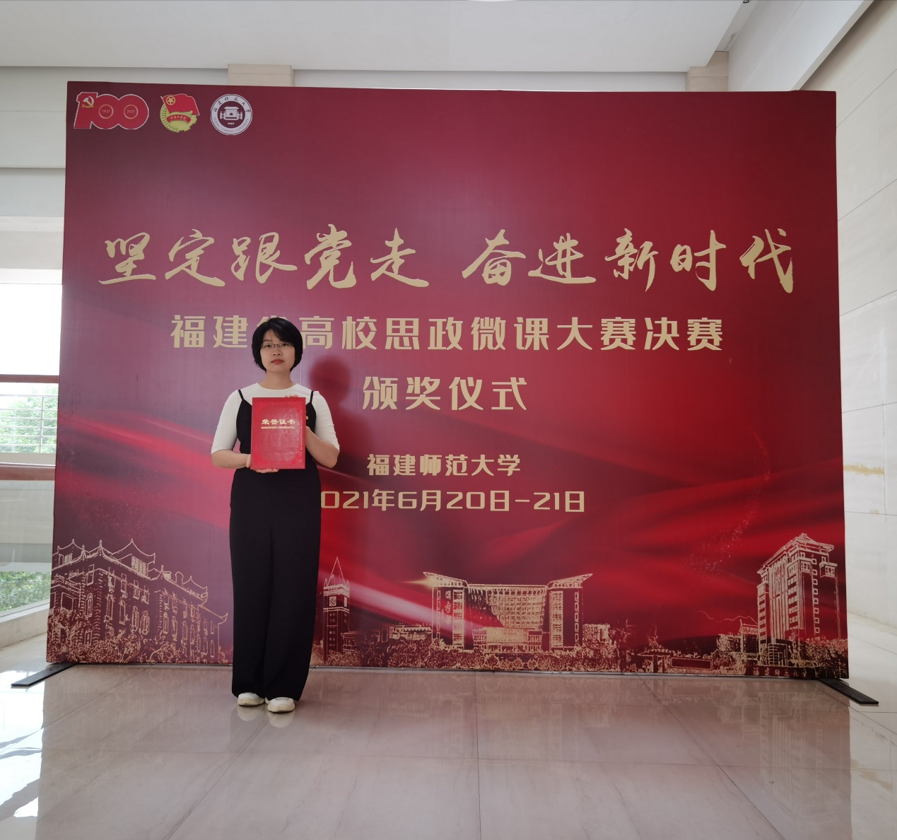 2021年6月20日至21日, 福建省高校思政微课大赛决赛在福建师范大学旗山校区举行,我院2018级硕士生苏心怡凭借优异的表现从众多参赛选手中脱颖而出,获得本科院校学生组特等奖,其参赛作品被确定为“十佳微课”。本次“坚定跟党走 奋进新时代”主题思政微课大赛由共青团福建省委、福建省学生联合会主办,共青团福建师范大学委员会、福建省学校青年工作研究会承办。