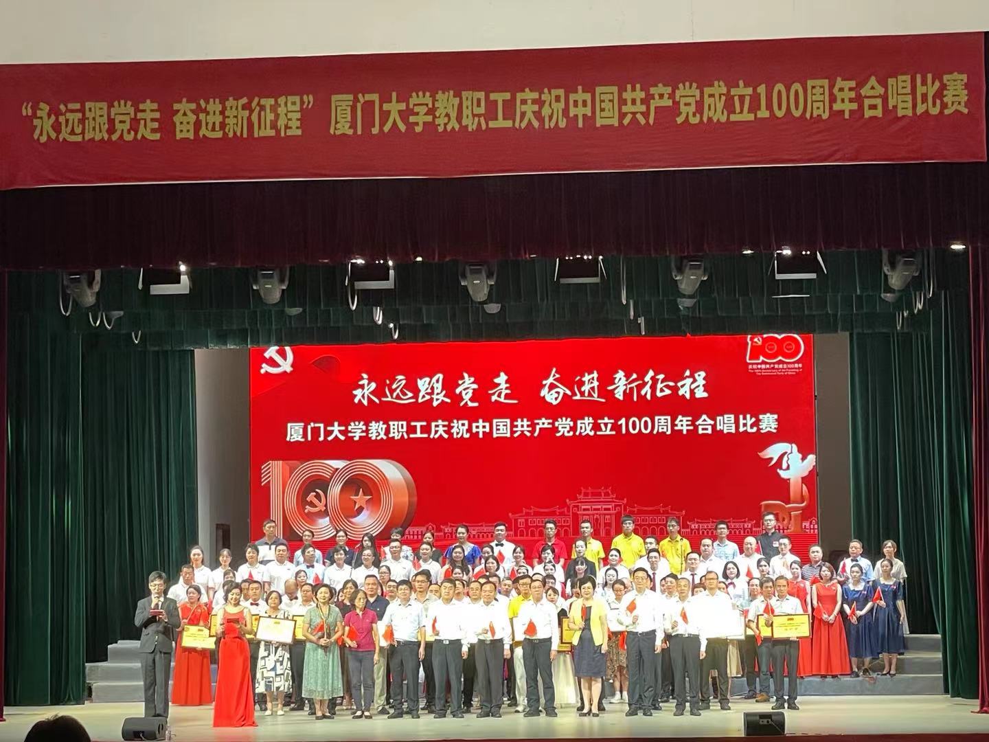 百年大党,风华正茂。6月26-27日晚,“永远跟党走 奋进新征程”厦门大学教职工庆祝中国共产党成立100周年合唱比赛在建南大会堂拉开帷幕,来自全校39家单位的教职工用歌声传递祝福,献礼建党百年。我院全体教职工积极参加了比赛,荣获了本次比赛三等奖和优秀组织奖。