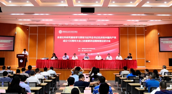 7月27日上午,厦门大学中国特色社会主义研究中心应邀参加由福建省社科联主办的“福建省社科研究基地学习贯彻习近平总书记在庆祝中国共产党成立100周年大会上的重要讲话精神理论研讨会”,会议在厦门国家会计学院举行,省社科联党组书记、副主席林蔚芬,厦门大学国家会计学院党委书记韩景义出席研讨会并致辞。会议由省社科联党组成员、秘书长、社科规划办主任陈飞主持。来自全省29个省级社科研究基地的所在高校部分负责人、科研管理部门负责人、基地主任、中心成员以及特邀专家学者等100多人参加研讨会。厦门大学中国特色社会主义研究中心精心准备并在首席专家兼执行主任冯霞教授的带领下参会。