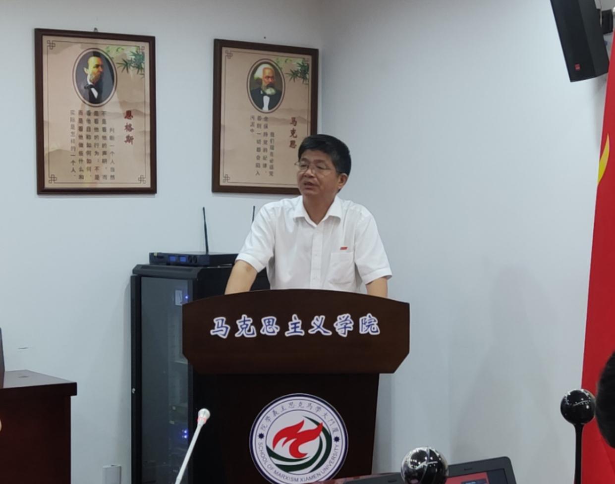徐进功院长首先代表全体师生向2021级新同学的加入表示衷心祝贺和热烈欢迎,向哺育和培养其成长的父母、老师致以崇高敬意。为让全体新生对厦门大学和厦门大学马克思主义学院有更加全面的认识,徐院长沿着历史脉络,将厦门大学100年的风雨奋进历程与厦门大学马克思主义学院10年来的发展壮大经历娓娓道来。对于进入马克思主义学院大家庭的新鲜血液,徐院长也给大家提出了几点要求和期望:第一,锤炼品德,坚定信念,在知行合一中担当作为。徐院长强调,选择进入厦门大学这座美丽与实力兼备的大学,便意味着选择了责任与担当,新一代青年要勇于拼搏奋斗,不断展现青春力量;第二,博览群书,脚踏实地,在勤学苦练中增强本领。“非学无以广才,非志无以成学”,徐院长勉励全体新同学一定要具备持之以恒的信心,树立自主学习、终身学习的意识,不断突破自己,实现厚积薄发;第三,勇于创新、严守规矩,在全面发展中书写辉煌。徐院长号召大家要在“内卷”化的时代,与“躺平”告别,无论是在学院工作中还是在学术深造中,都能够不断超越自己。