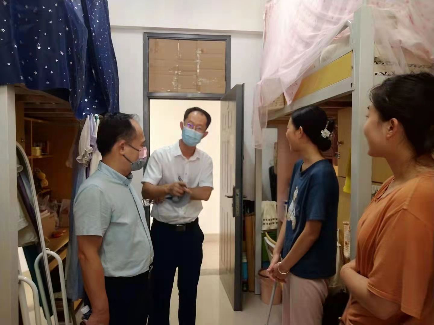 暖心关怀,走访看望马院学子。9月10日,张荣校长深入学院迎新一线,校党委副书记、马克思主义学院院长徐进功、院党委书记侯利标等院领导和老师,逐一走访看望马院学子,慰问家庭困难学生。新生入学后第一周,当新一轮新冠疫情在厦门肆虐,疫情防控形势日益严峻,学生们的学习生活受到一定影响。学校、学院领导多次深入学生宿舍,加强学生教育和引导,为学生排忧解困,疏解心理恐慌。对于入住健康观察区的同学,积极做好协助、保障、关心工作,并通过线上连线,询问同学生活情况,隔离不隔爱。在学院领导、老师们的关怀下,同学们在冰冷的病毒前,仍能感受到温暖与关爱。