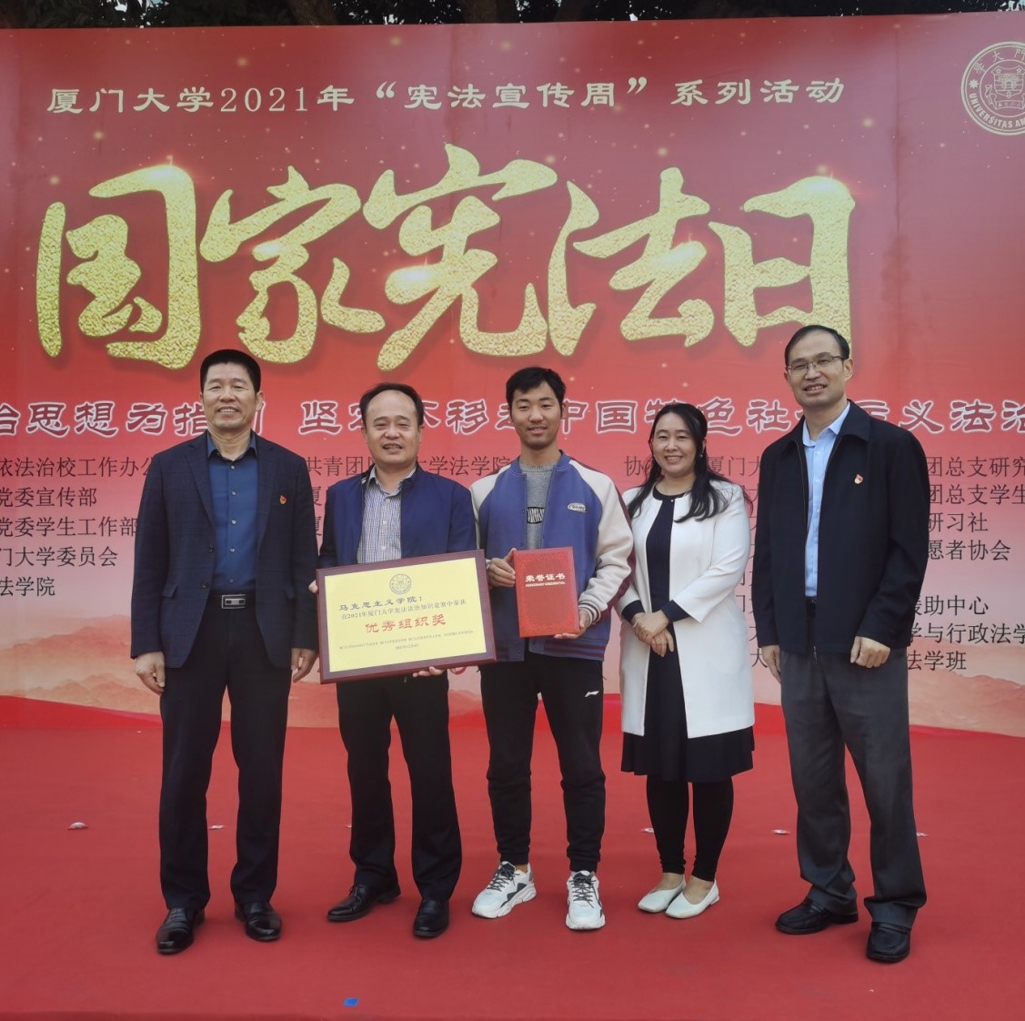 12月4日,厦门大学2021年“国家宪法日”主题宣传教育活动在三家村学生活动广场隆重举行,我院荣获“宪法与法治知识竞赛”优秀组织奖,我院2020级硕士研究生学生唐帅荣获“宪法与法治知识竞赛”二等奖,2020级硕士研究生吴春金荣获“学宪法,讲宪法”演讲比赛三等奖。