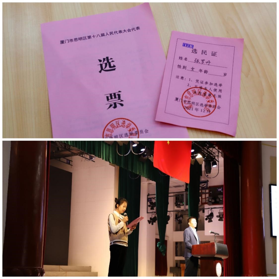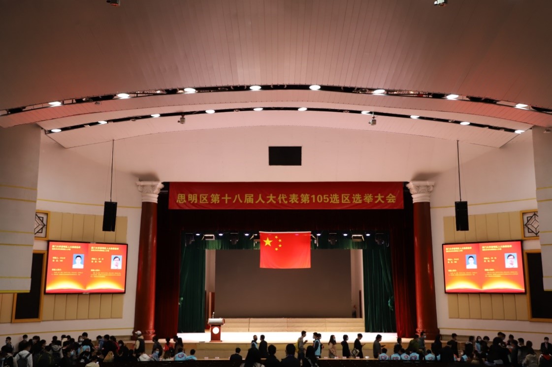 人大代表选举,是人民政治生活中的一件大事,是人民当家作主的重要体现,也是全过程人民民主最生动、最直接的体现。2021年12月10日上午9时30分,我院师生选民在思明区105选区人大代表换届选举建南大会堂投票站现场投下庄严一票。