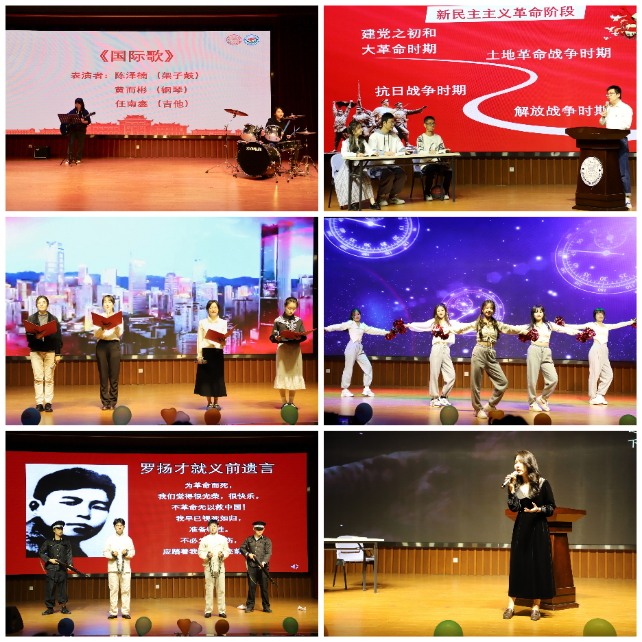 信仰是灯塔,照亮我们前进的方向。晚会伊始,黄而彬、陈泽楠、任南鑫同学的乐器合奏《国际歌》瞬间点燃师生们的热情。刘进龙、郑智超、杨雨岚等同学带来的音乐剧《见证》带领我们回望历史长河,见证党领导人民浴血奋战、锐意进取,创造的一个又一个伟大成就。永远跟党走是每个马院人的庄重誓言,李路静、王红艳、黄相宜、黄而彬同学深情朗诵《永远跟党走》,诠释了我们作为马院人紧跟党走的决心。马院“少女时代”为大家带来舞蹈啦啦操《Oh!》,展示着马院人火焰般燃烧的激情。扬才小分队带来的话剧《罗扬才》生动展现了革命先烈为国赴死的革命精神。