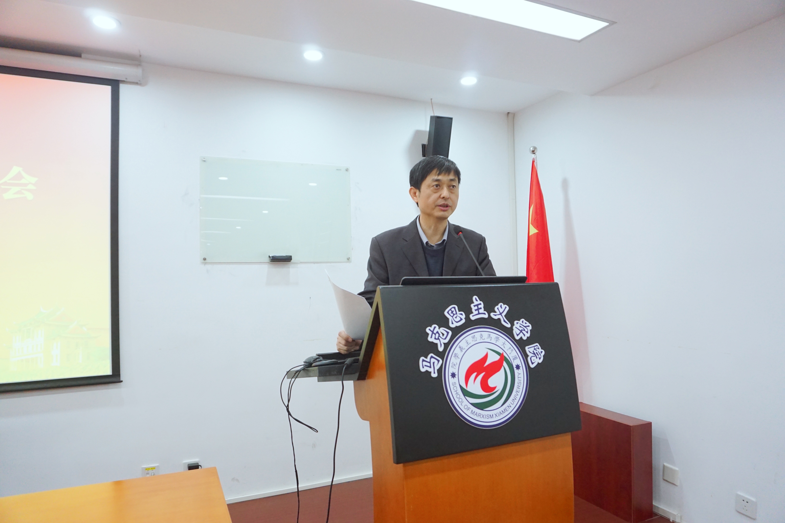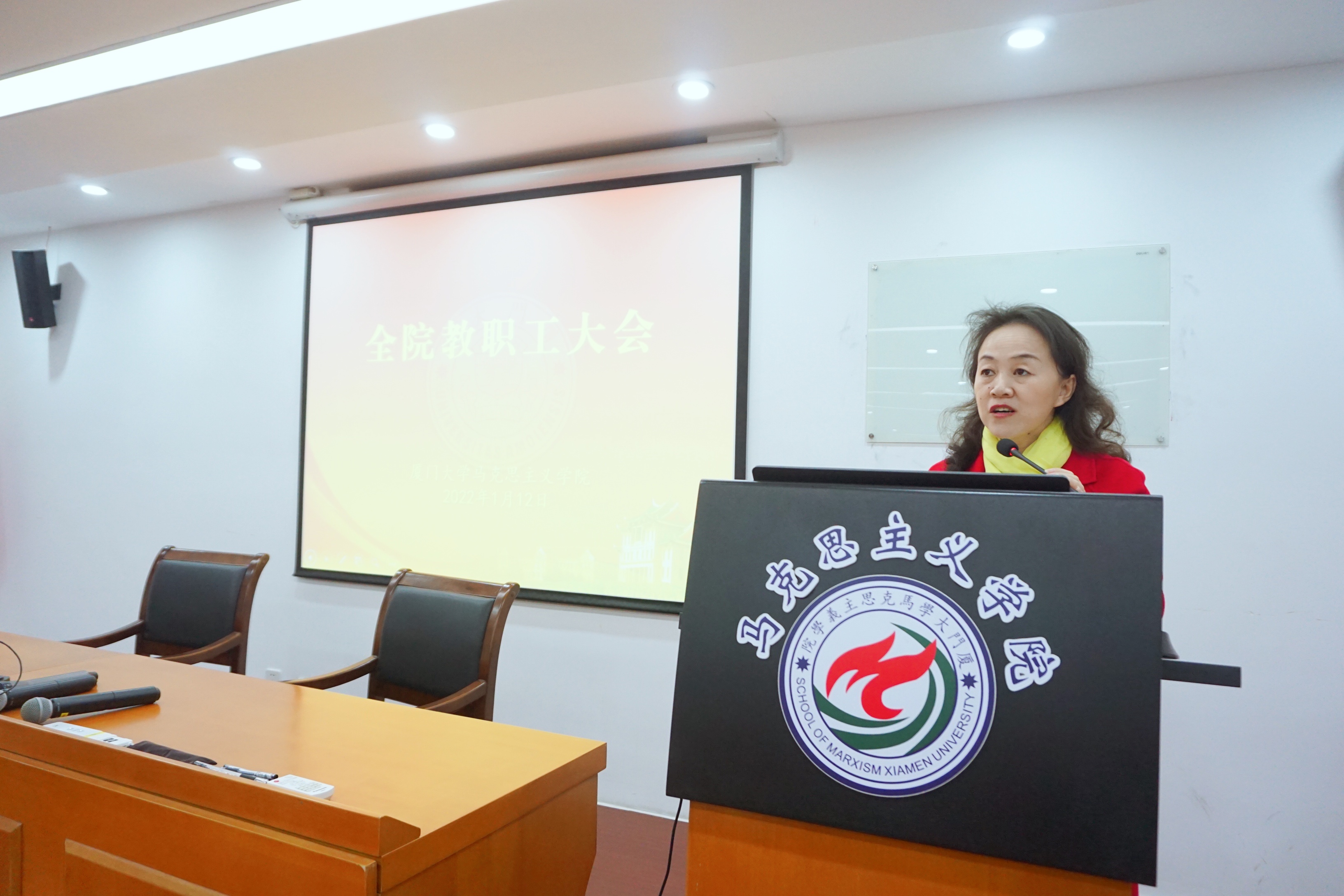 2022年1月12日上午,马克思主义学院年度工作总结大会在囊萤楼313会议室召开。会议总结了2021年学院的主要工作,并对学院新年度的工作重点进行部署。学院党委书记石红梅,党委副书记、常务副院长张有奎,党委副书记杨建中,副院长原宗丽、张艳涛等出席会议,学院全体教职工参会。会议由石红梅主持。