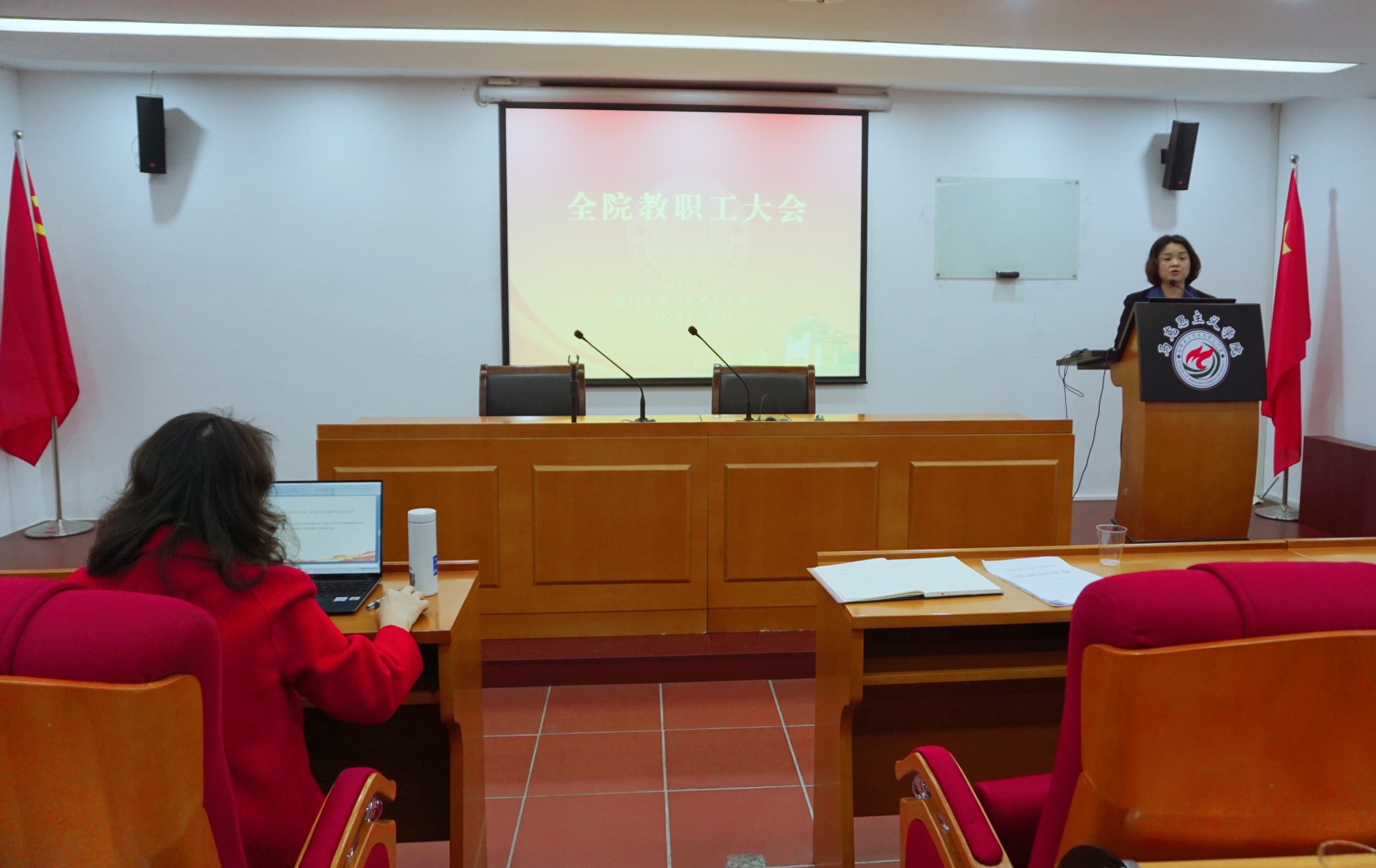会上,张有奎代表党政领导班子对学院2021年度工作做总结报告,他肯定了学院在教师队伍建设、科学研究和学科建设、思政课建设等方面的突出成果,并从人才培养、学院建设等方面对学院2022年的新发展提出指导性意见。原宗丽对思政课建设工作进行总结,在过去一年里,学院积极响应新时代思政课需求,推出国家安全课等系列新课程,其中三门课程成功入选省级精品课程。学院应立足自身优势,搭建教师成长平台,提高思政课程教学质量,积极推进大中小学思政课一体化建设。张艳涛对学院的具体工作进行强调,一要大力调动教师课题申报的积极性,保障科研项目申报质量及结题质量;二要提升研究生人才培养质量,严把毕业论文质量关;三是多措并举开创研究生管理新局面,全力做好疫情防控工作,筑牢反诈宣传安全防线,落实学术规范建设。