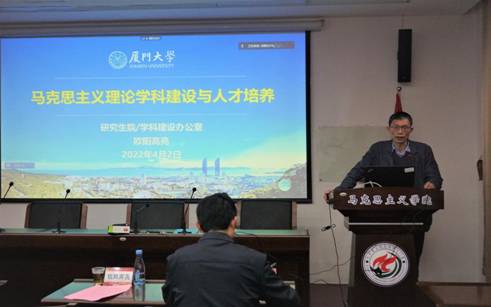 研究生院副院长、学位与学科建设办公室主任欧阳高亮作题为《马克思主义理论学科建设和人才培养》的专题报告。欧阳高亮结合《关于深入推进世界一流大学和一流学科建设的若干意见》文件精神和学科建设面临的主要痛点、堵点、和难点,从体制创新、学科融合、队伍建设、考核评价、科学研究、国际交流、社会服务出发,就加强马克思主义理论学科内涵建设、提升学科建设水平等提出发展思路和具体建议。