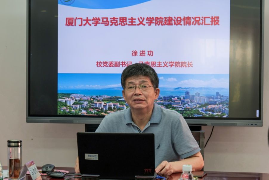 校党委副书记、马克思主义学院院长徐进功作学院建设情况汇报,详细介绍了学院发展历史和取得的主要成绩,着重汇报学院在党建示范引领、思想政治理论建设、学科建设、人才培养、科学研究、社会服务等方面的情况,以及中长期发展目标和进一步努力方向。