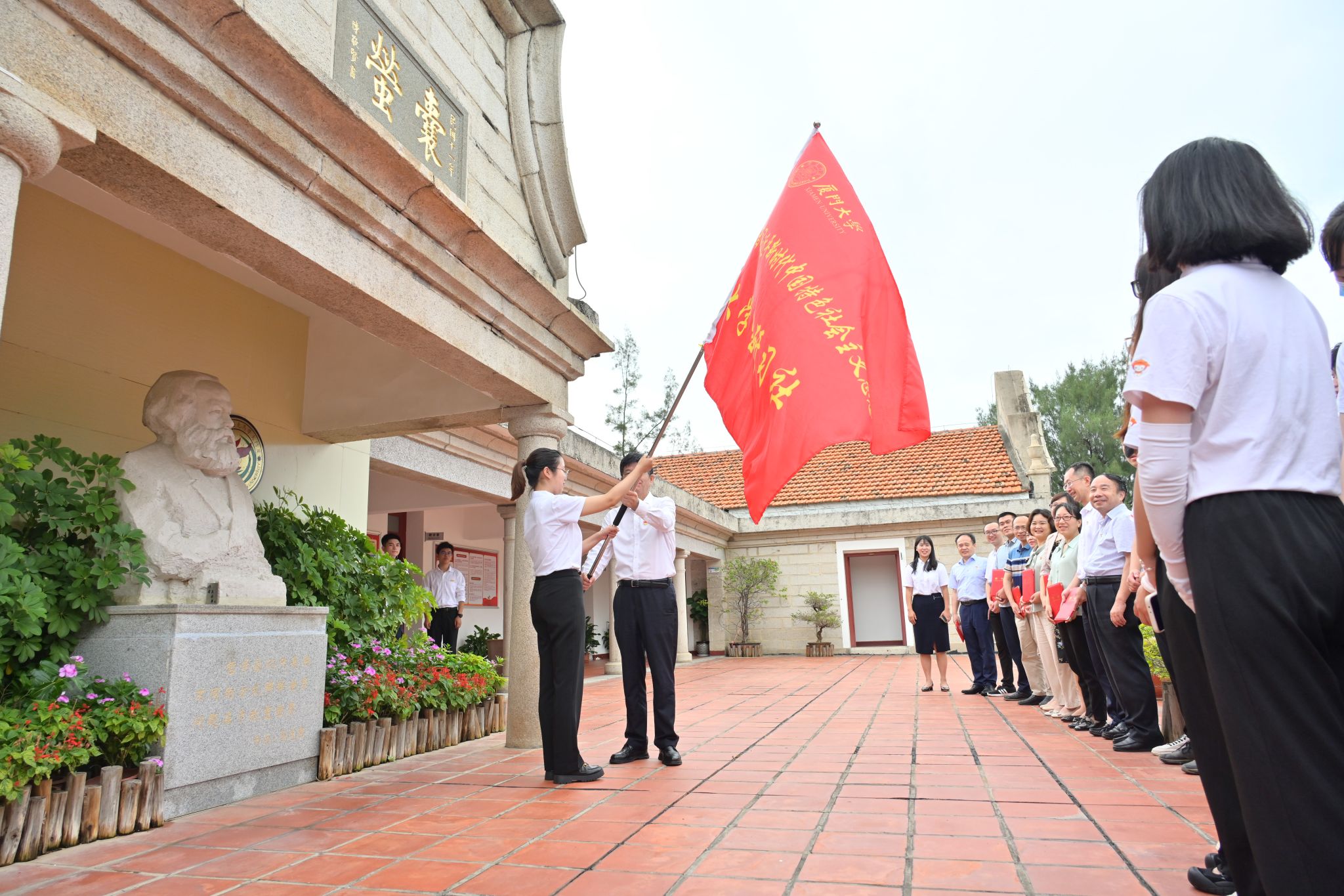 仪式尾声,徐进功老师为研习社学生代表授旗,红旗猎猎,斗志昂扬,研习社的成员们必将在当代马克思主义的旗帜之下全力以赴、奋勇争先,主动扛起学习、研究新思想的重任,当好宣传贯彻新思想的排头兵,以优异的成绩迎接党的二十大的胜利召开。
